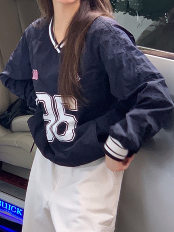 Dünnes Sweatshirt mit V-Ausschnitt und Zahlen-Print