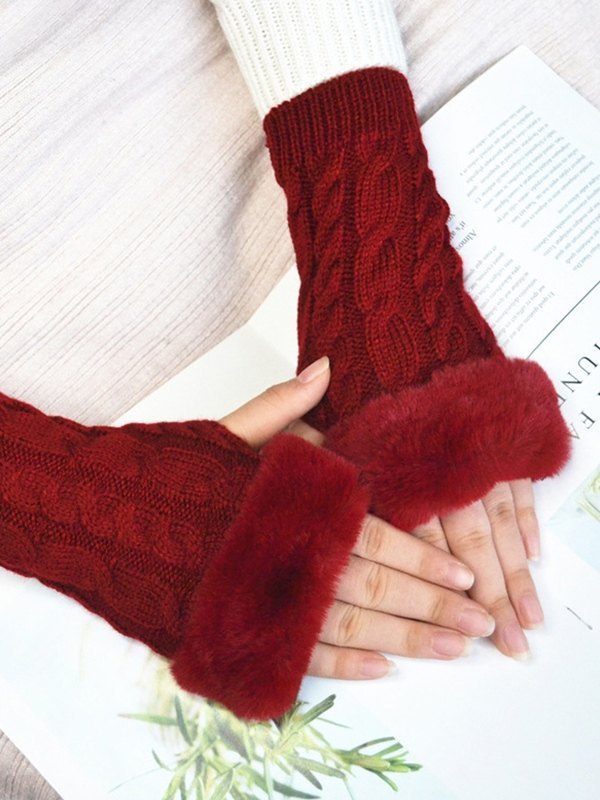 Fingerlose Zopfmuster-Handschuhe mit Kunstpelzbesatz
