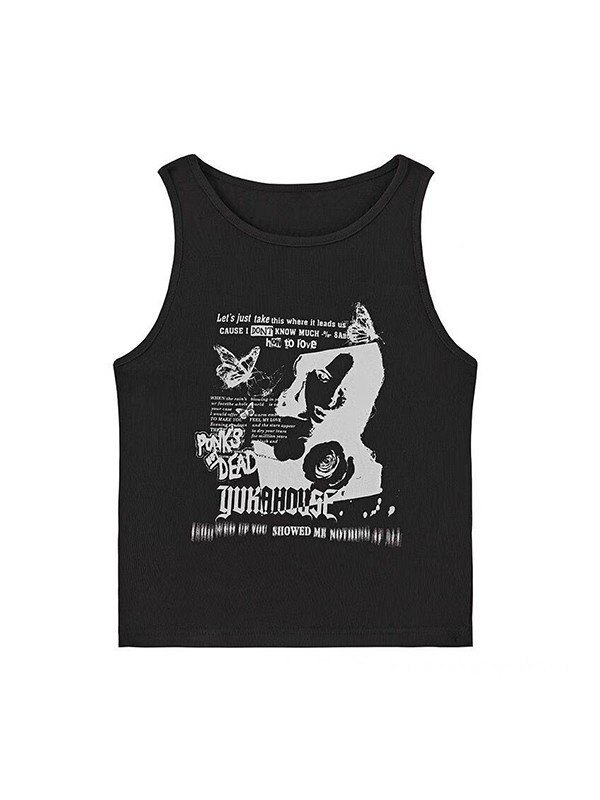 Stil: Casual/Street/Y2K/Grunge/Punk/Hip Pop/Vintage Material: Polyestermischung Passform: Slim Fit Ausschnitt: Rundhalsausschnitt Ärmellänge: Ärmellos Beschreibung: Dieses Baby-Tanktop aus dehnbarem, weichem Rippstoff, geformt zu einem Crop, taillierte Silhouette, mit Blumenschmetterling und modernen Mädchenelementen.