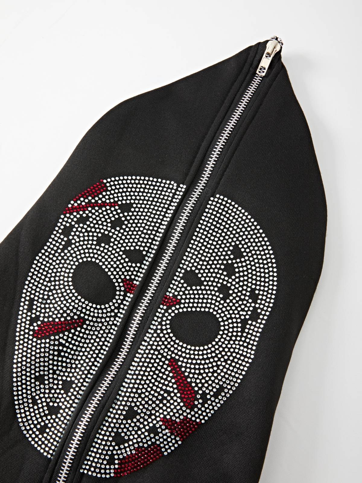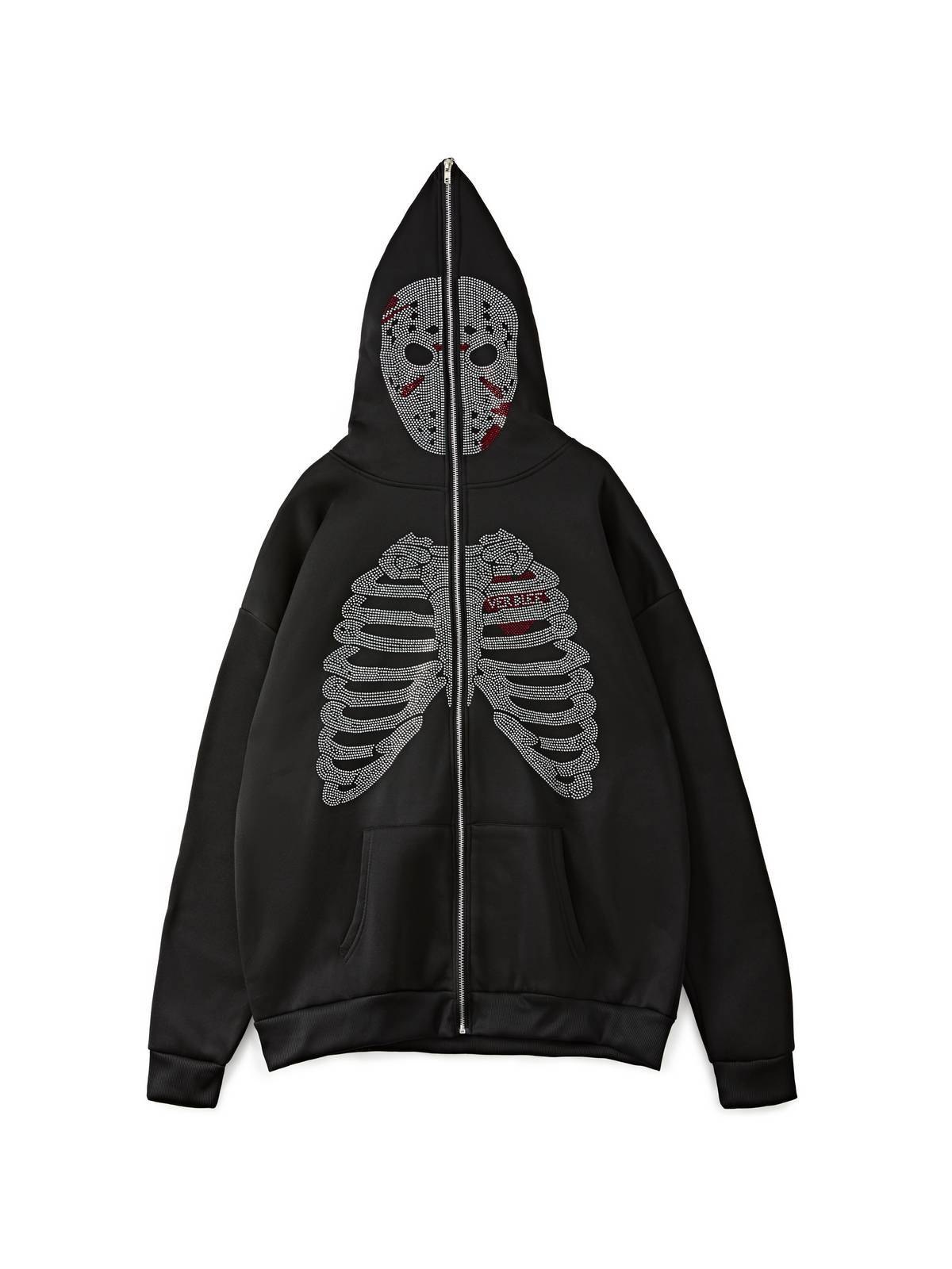 >Beschreibung: Aktualisiert mit diesen Hoodies für festliche Halloween-Stimmung. Zu einer entspannten Silhouette geschnitten, mit Strass-Schädelgesicht und Skelettknochenmuster auf der Vorderseite, mit funktionellen Taschen, überschnittenen Schultern und einem Design mit Reißverschluss.