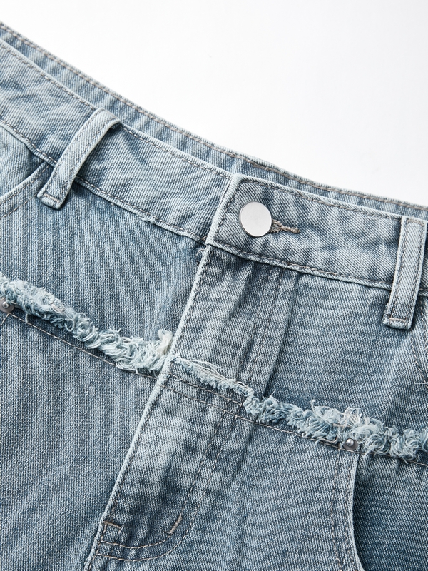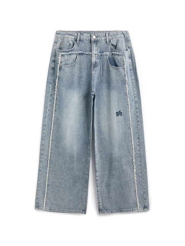 Beschreibung: Diese lockere Jeans aus verwaschenem Denim für Herren hat eine Skater-Silhouette, ein Patchwork-Bein mit rohen Besätzen, ein aufgesticktes Logo und funktionale Jeanstaschen.