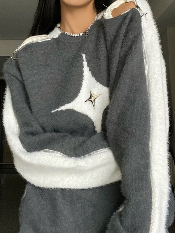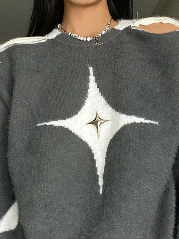Lose Pullover mit Reißverschluss und Ausschnitt und Sternendekor