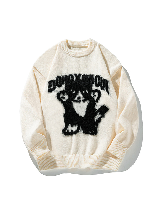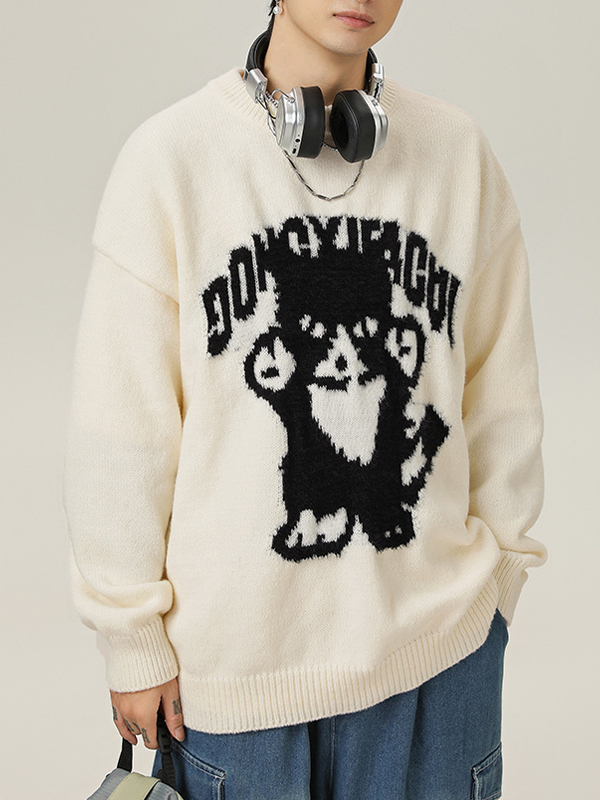 Pullover mit Rundhalsausschnitt und handbemaltem Cartoon-Muster