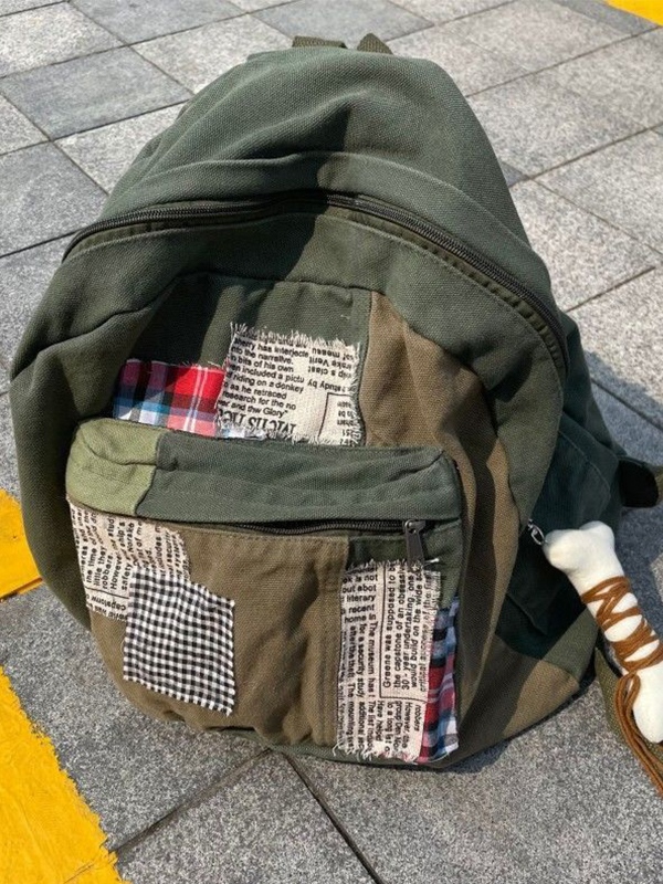 Details: mit verschiedenen Vintage-Aufnähern als Dekor.