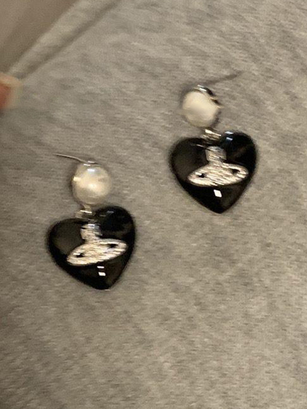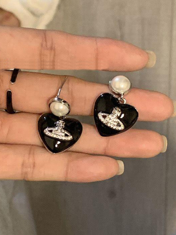 Schwarzer Herz-Saturn-Diamant-Gravur-Ohrstecker