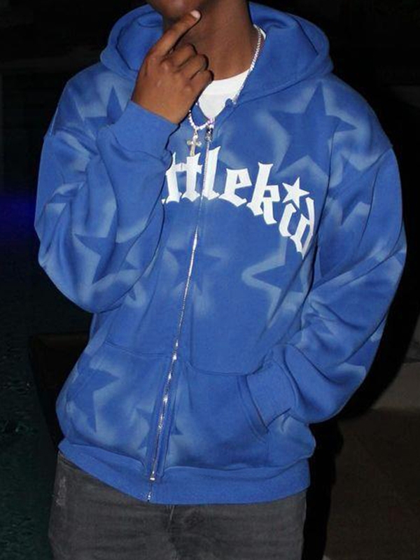Einzigartig Design: Der Kapuzenpullover verfügt über einen Vintage-Stern- und Buchstabendruck, der ihm einen coolen Street-Touch verleiht, der sich von der Masse abhebt. Vielseitiger Stil: Das Design des Hoodies vereint lässige, Street-, Vintage-, Hip-Pop- und Punk-Stile. Damit ist es eine vielseitige Ergänzung für jede Garderobe.