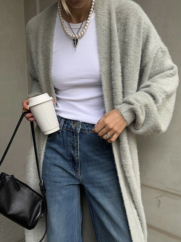 Einfarbiger Baggy-Cardigan aus Mohair mit Laternenärmeln