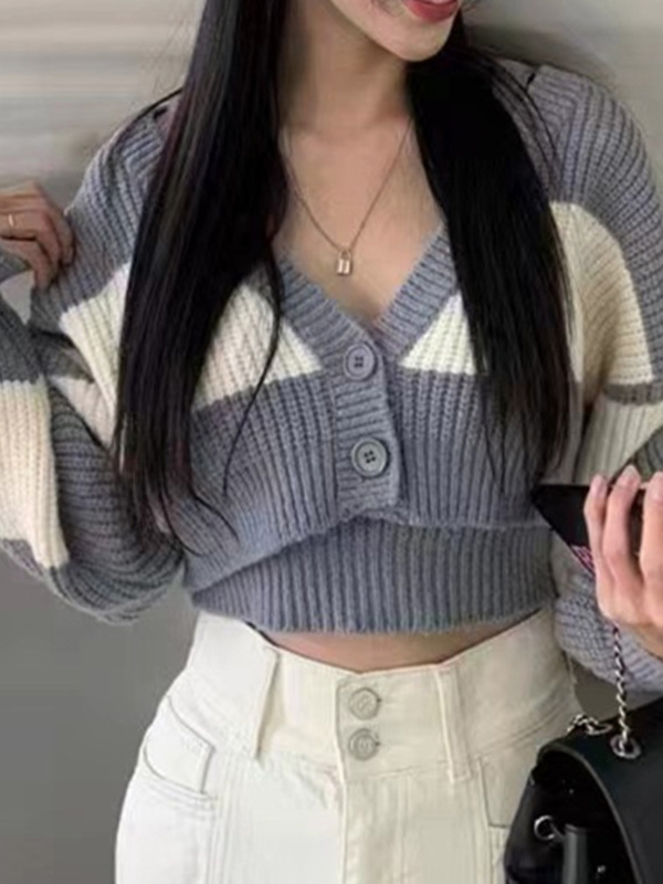 Kurzer Strick-Cardigan mit Streifen-Spleißmuster