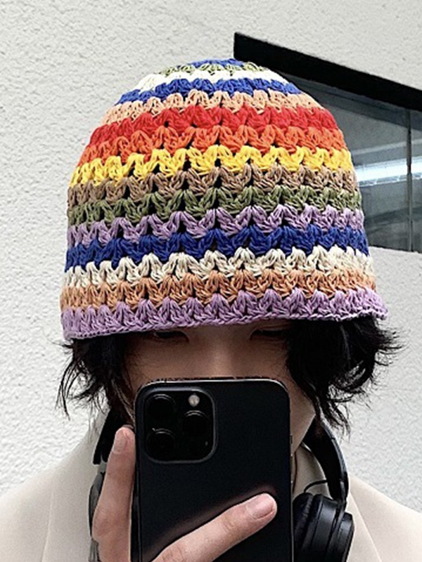 Regenbogenfarbene Häkelstrickmütze