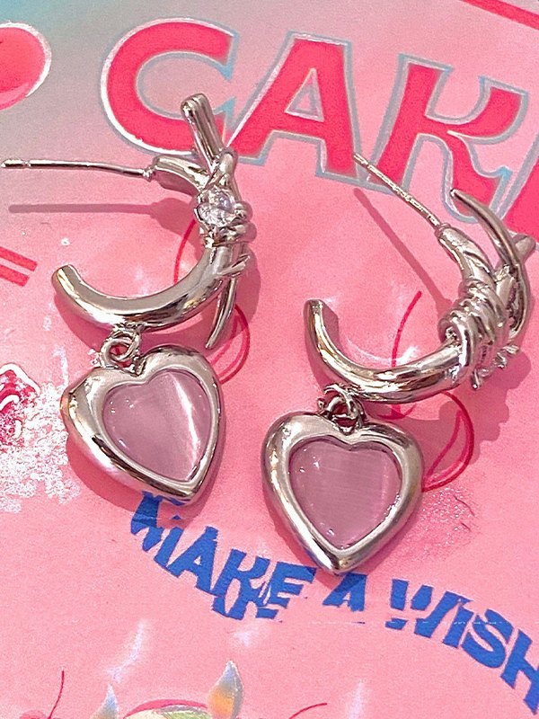 Stein-Herz-Charme-Ohrringe