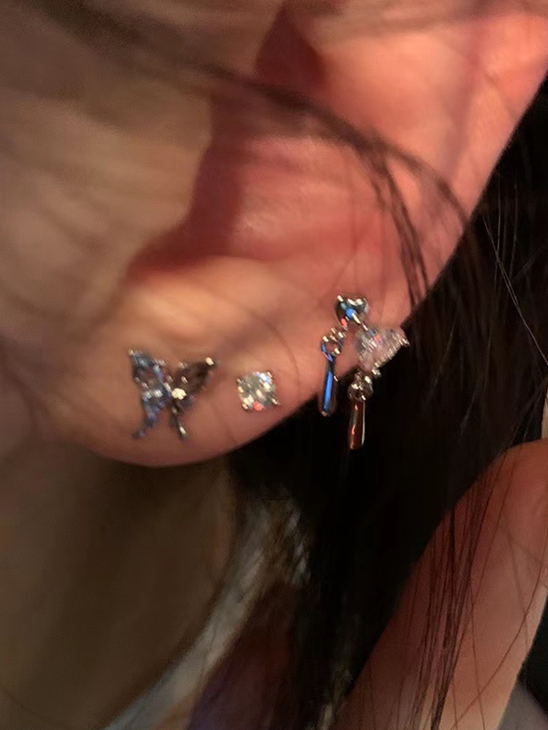 6 Stück glänzende Schmetterlings-Herz-Diamant-Ohrstecker