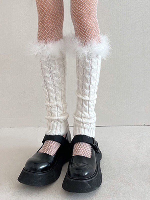 Zopfstricksocken mit Fuzzy-Besatz