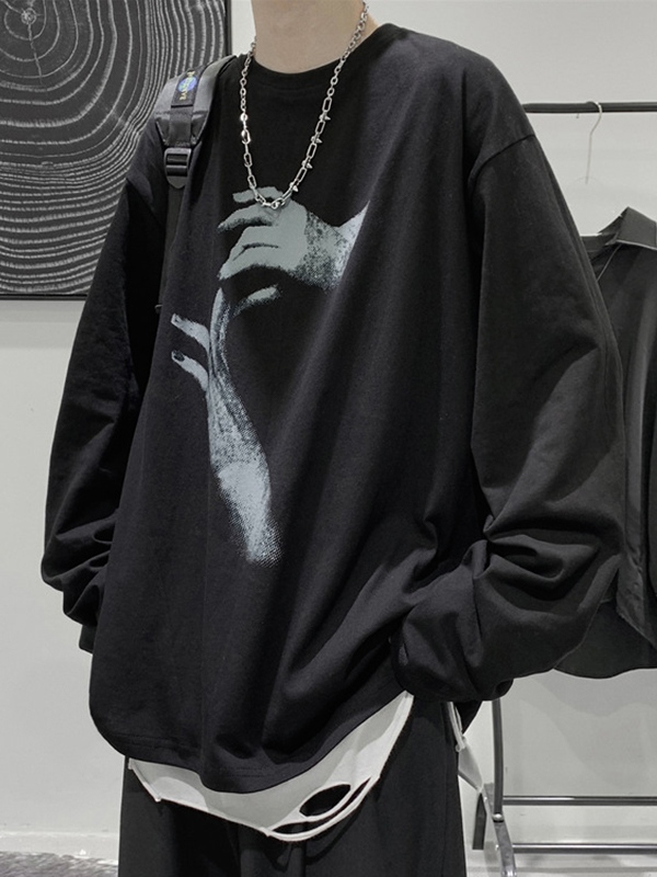 Gefälschte zweiteilige Loch Design Kette lose dunkle Print Sweatshirt