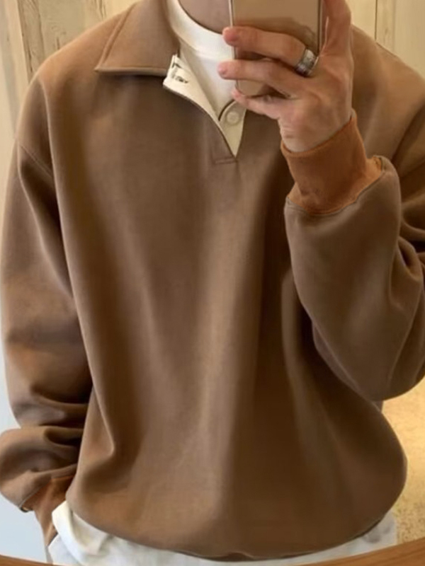 Kontrastfarbenes Herren-Sweatshirt mit Reverskragen und halbem Reißverschluss