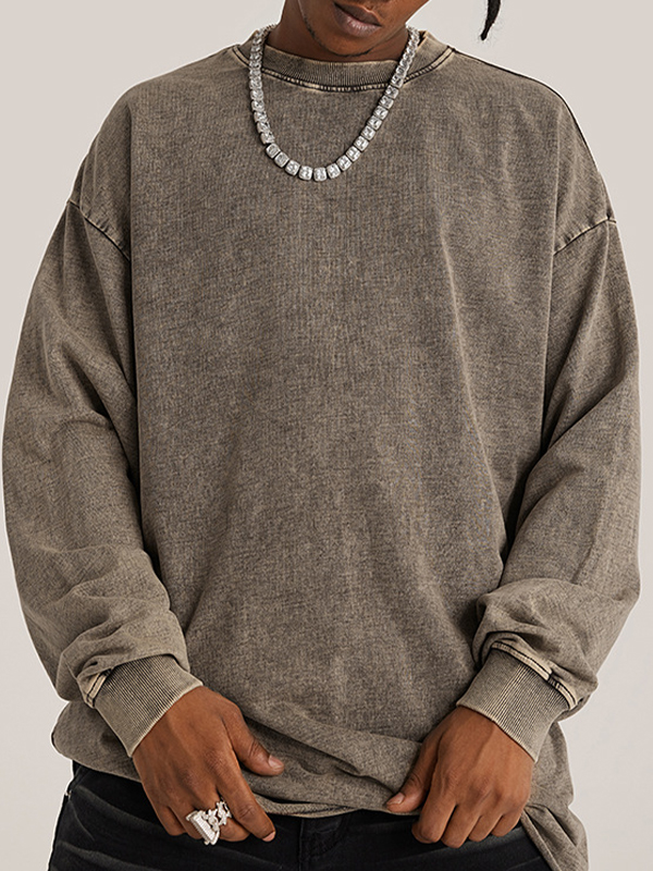 Einfarbiges, verwaschenes, dünnes Herren-Sweatshirt im Distressed-Look
