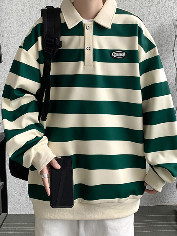 Herren-Sweatshirt mit Vintage-Streifen und Hemdkragen