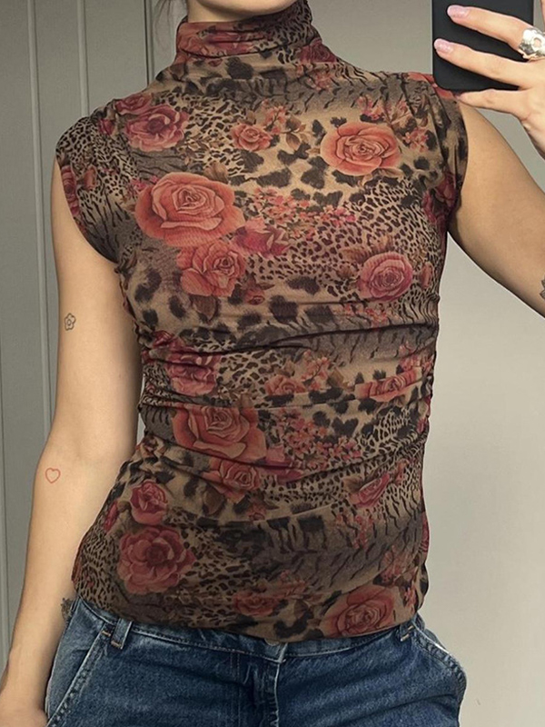 Blumendruck Retro Perlen Unregelmäßig Hot Girl Neckholder Träger Weste