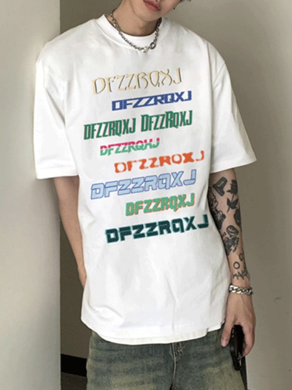 Kurzärmliges Herren-T-Shirt mit farbenfrohem Buchstabendruck