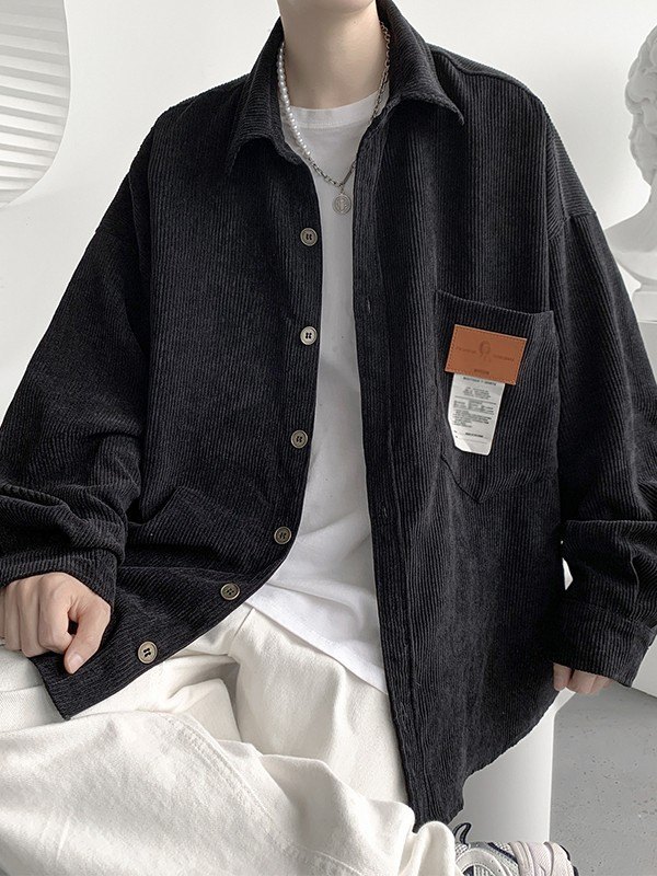 Cord-Langarmhemd mit Patch-Detail für Herren