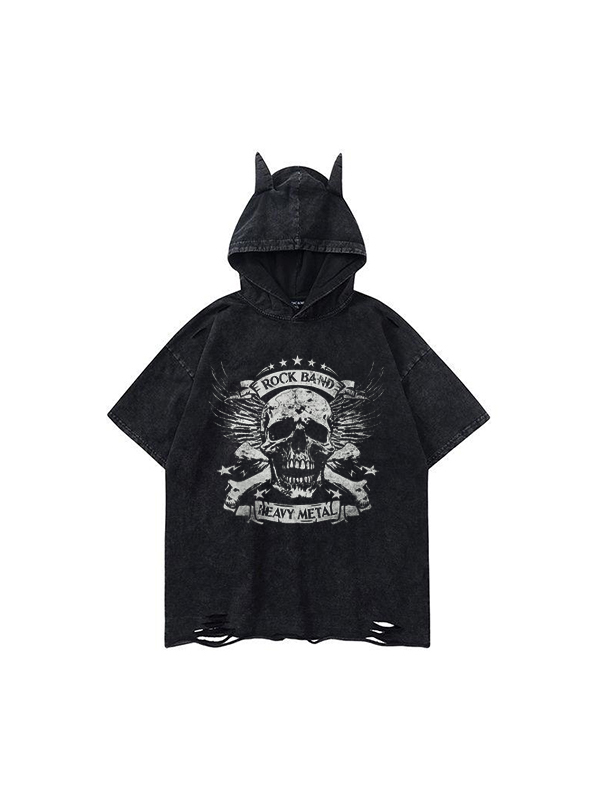 Kurze Ärmel mit kleinem Teufels-Totenkopf-Print