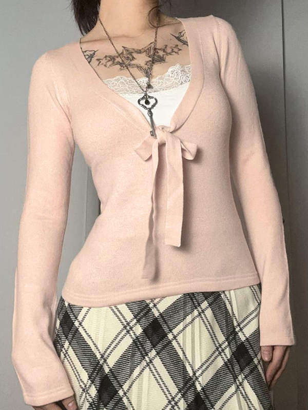 Einfaches Kurzarm-T-Shirt mit V-Ausschnitt