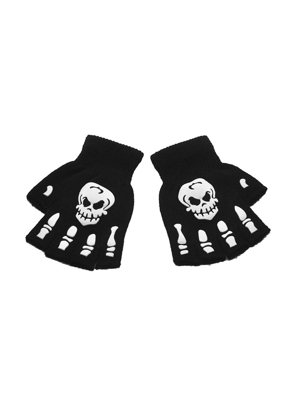 Halbfinger-Handschuhe mit leuchtendem Totenkopf-Print für Halloween