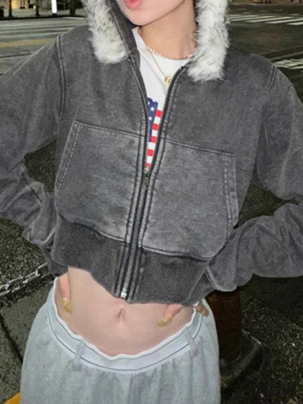 Street Retro Karierte Jacke mit Pelzkragen