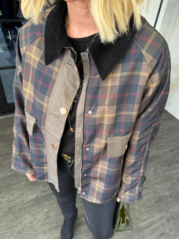 Street Retro Karierte Jacke mit Pelzkragen