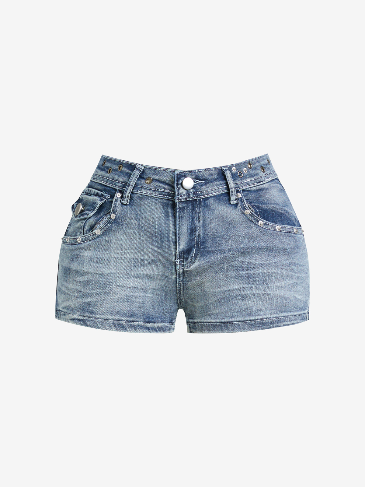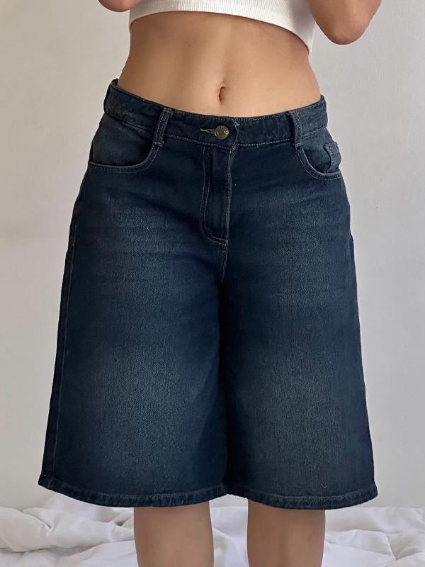 Slim Fit Jeansshorts im Retro-Waschungsdesign