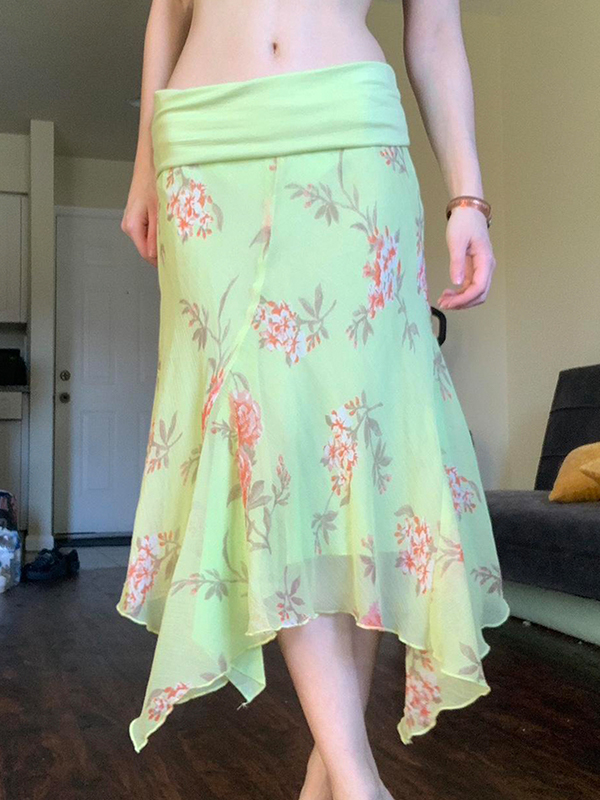 Maxirock mit Rüschen und Blumenmuster im Spice Girl-Stil