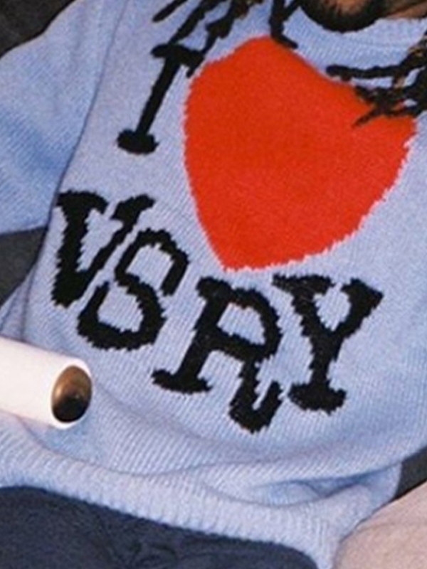 Herren-Strickpullover mit Rundhalsausschnitt und Jacquardmuster mit Buchstaben und Herzmuster