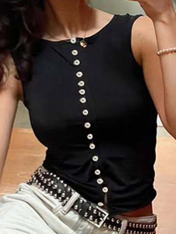 Ärmelloses Tanktop mit V-Ausschnitt und Knopfleiste
