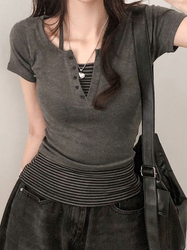 Fake Zweilagiges Cut-Off Kurzarm
