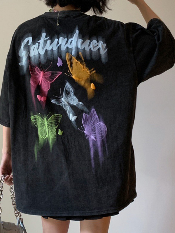Übergroßes Kurzarm-T-Shirt mit Vintage-Graffiti-Schmetterling