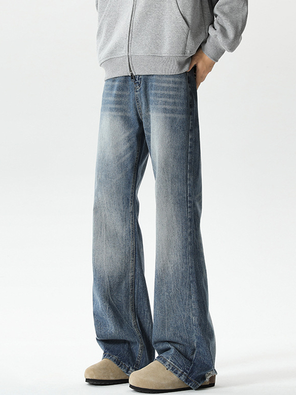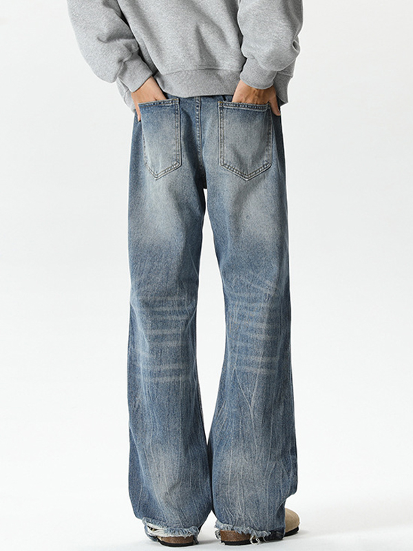 Lockere Jeans im American Retro-Look mit verwaschenen Katzenschnurrhaaren und leicht erhabener Waschung
