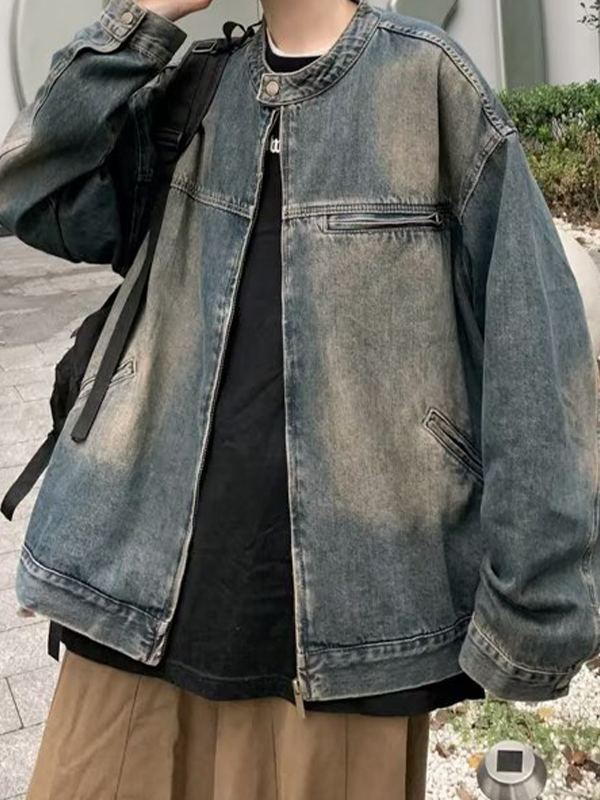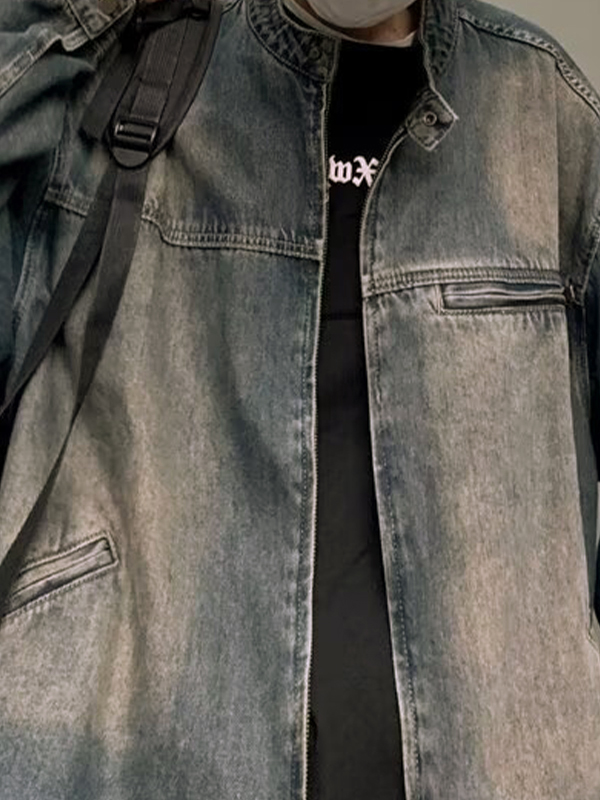Cooles Denim-Design: Die Das Vintage-Denim-Design mit einem modernen Touch verleiht dieser Jacke einen einzigartigen und trendigen Look.